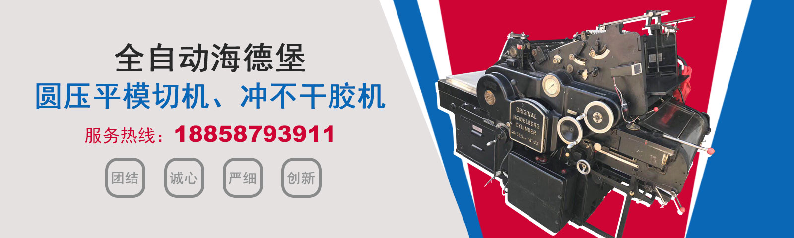 瑞安市恒柯機械廠(www.wzhkjx_com.hsshare.cn)是國內專業制造銷售全自動模切機,全自動燙金機,圓壓平模切機,圓壓平燙金機,滾筒燙金機,沖不干膠機,海德堡凸印機.銷售的產品系列規格齊全,產品具有速度快,壓力均勻,套印準確等特點。